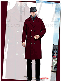 棗紅色男職業(yè)裝大衣服裝款