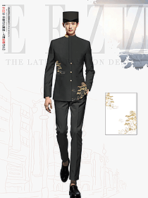 中式立領(lǐng)長(zhǎng)袖男款酒店門(mén)童