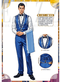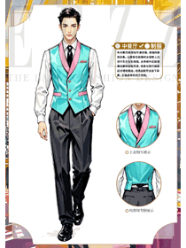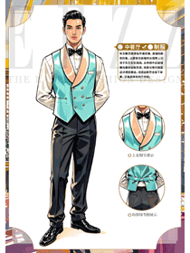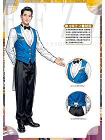 特色酒店餐廳藍(lán)色馬夾男服