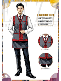酒店餐廳青果領(lǐng)馬夾員工制