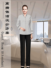 灰色長(zhǎng)袖女款清潔員制服設(shè)
