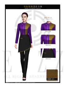 新款紫色長袖中餐傳菜員制