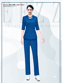 美容院技師女夏季藍(lán)色制服