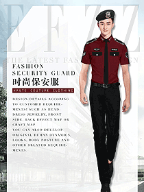 時(shí)尚深紅色短袖保安服設(shè)計(jì)