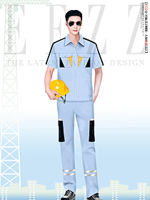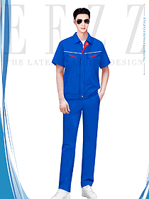 短袖寶藍(lán)色工程服夏季設(shè)計(jì)