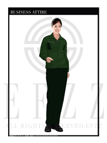 女款綠色長(zhǎng)袖工程制服款式