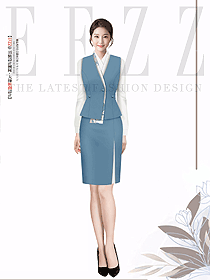 藍(lán)色系列女職業(yè)裝襯衫馬夾