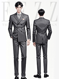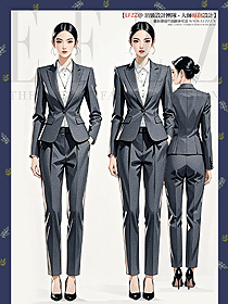 秋冬灰雙排扣職業(yè)套裝男女